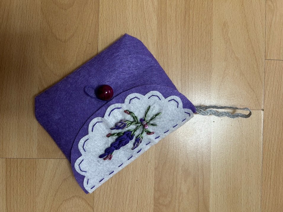Mor ince Keçe Bohem Nakışlı Cüzdan 2 Li set