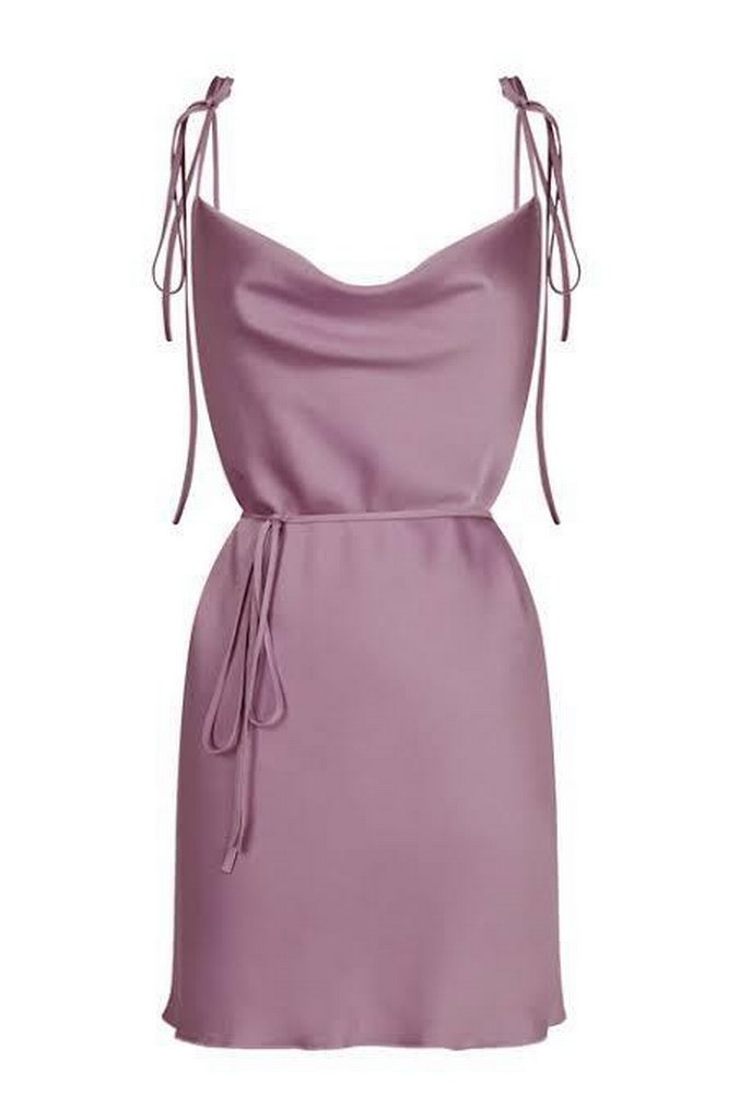 İp askılı, drapeli ve straplez yaka detaylı mor mini elbise, çok yumuşak ve kaliteli bir saten elbise hiç giyilmedi hediye geldi.