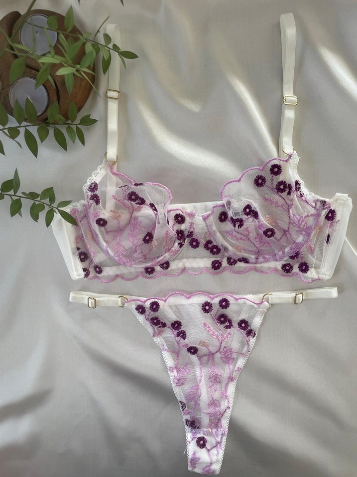 Mor İşlemeli Bohem Sütyen ve Külot Takımı