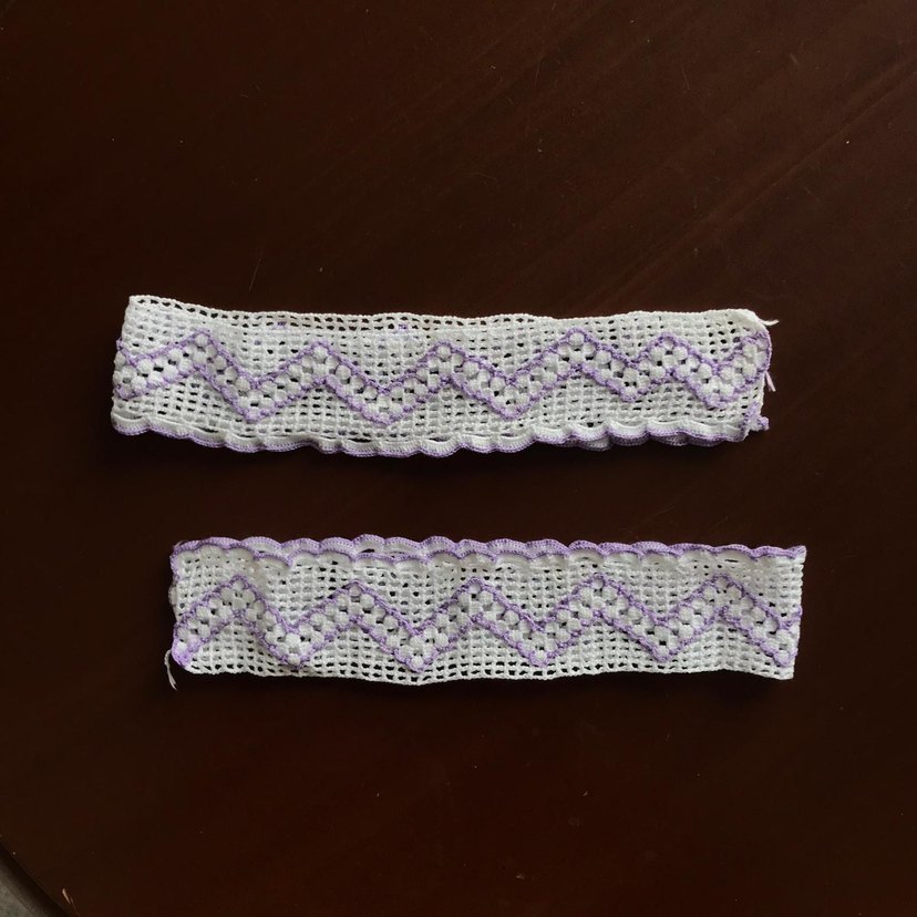 Mor işlemeli zigzag desenli beyaz dantel şerit, el işleri için zarif bir dokunuş sağlar . Havlu içindir 2 adettir