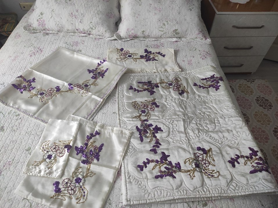 Mor İşlemeli Parlak Bohça Takimi