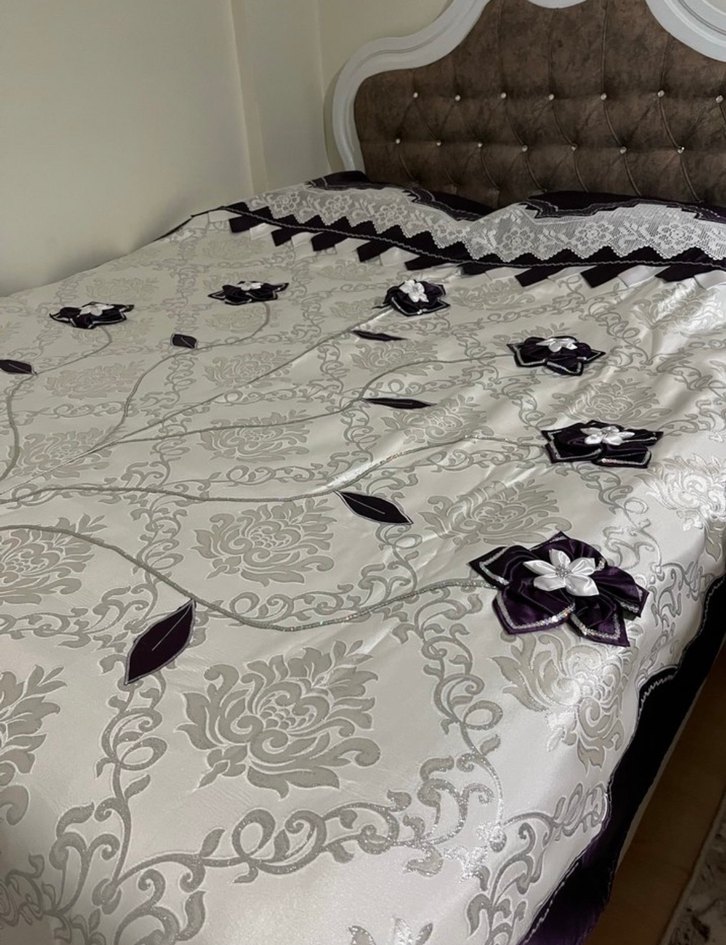Çeyizlik veya özel gün yatak örtüsü hiç kullanılmadı ürün temizdir kusuru yoktur cüzi miktarda pazarlık payı vardır