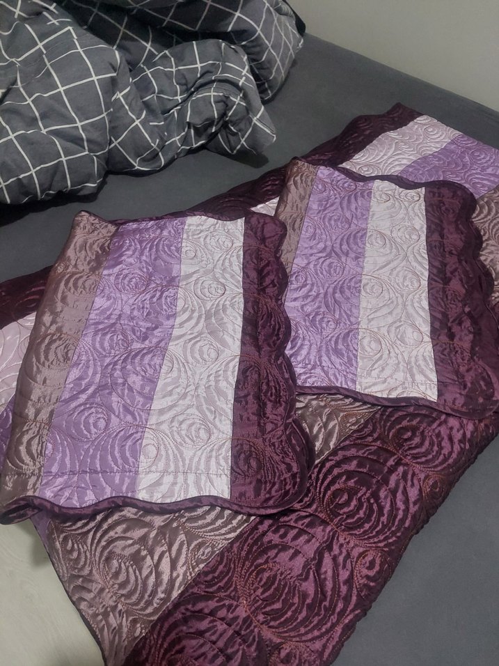 Mor İşlemeli Yatak Örtüsü.Sayılı kullanılmış olup sorunsuzdur