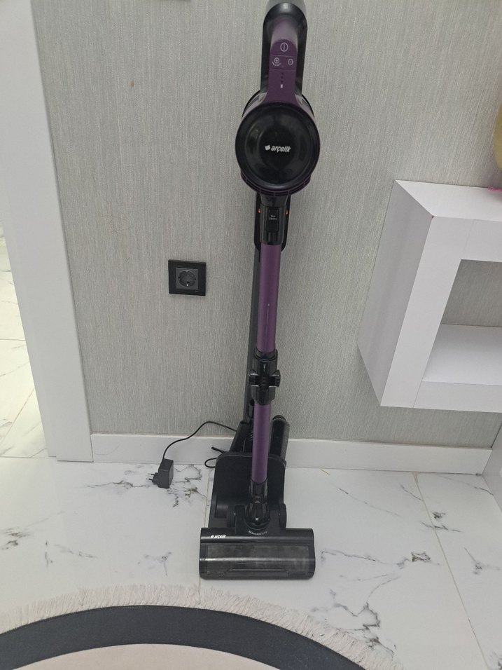 Kompakt tasarımlı koyu mor kablosuz dikey elektrikli süpürge, etkili temizlik için uygundur. Şarj standı ile kolay saklama sağlar.1 ay tek kullanıldı.Hicbir sorunu yok