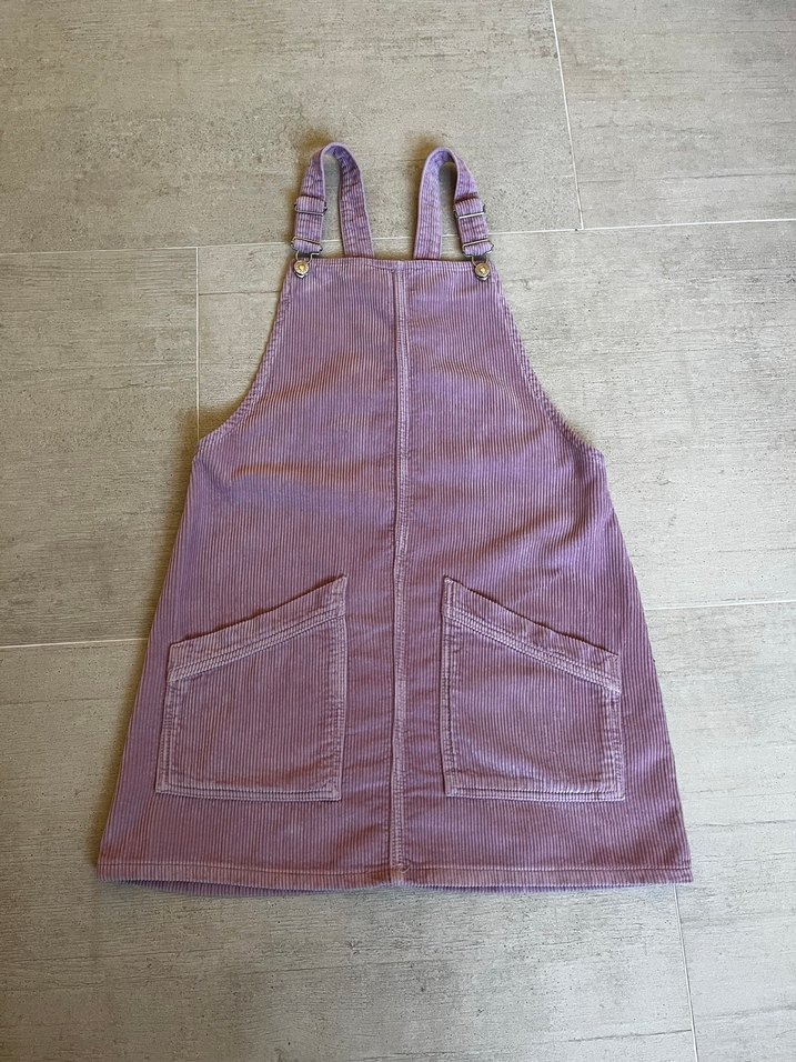 Hiçbir sorunu yoktur .Mor pastel renkte, düğmeli askılı ve ön cepli salaş tulum. Yumuşak dokulu kumaştan yapılmıştır.