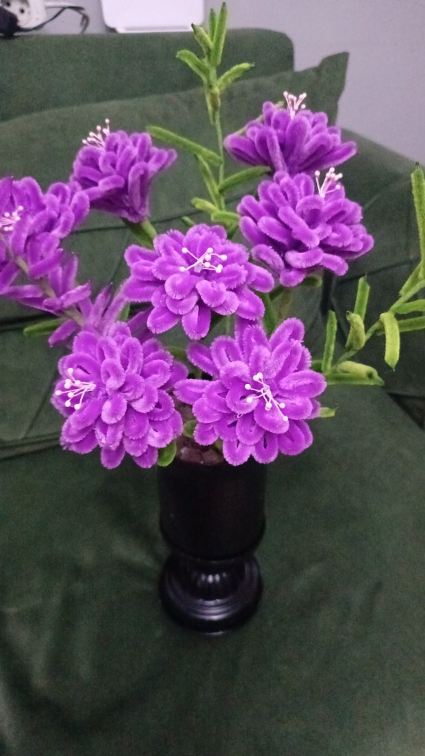 Mor Kadife Çiçekli Siyah Vazo