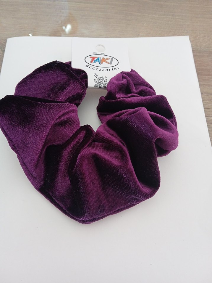 Mor kadife dokulu, lastikli saç tokası. Yumuşak ve rahat yapısıyla bohem ve retro tarzlara uygun.