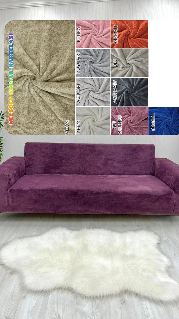 Mor kadife dokulu, modern ve desensiz koltuk örtüsü. Canlı renk seçenekleri mevcuttur. ️