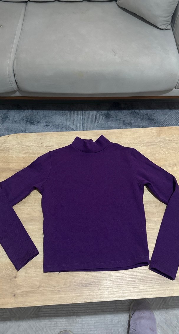 Mor renkli, balıkçı yaka ve uzun kollu, vücuda oturan kadın kazak. Yumuşak ve sıcak kumaştan, günlük kullanıma uygun sade tasarım.
