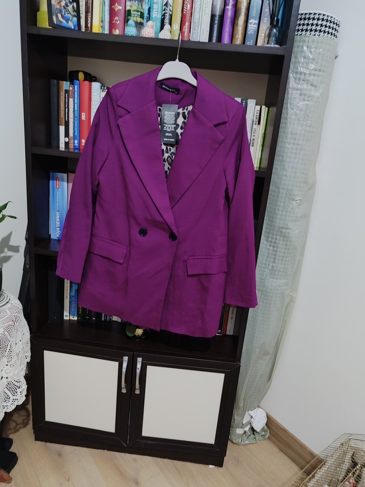 Mor Kadın Blazer Ceket, Düğmeli, Midi Boy