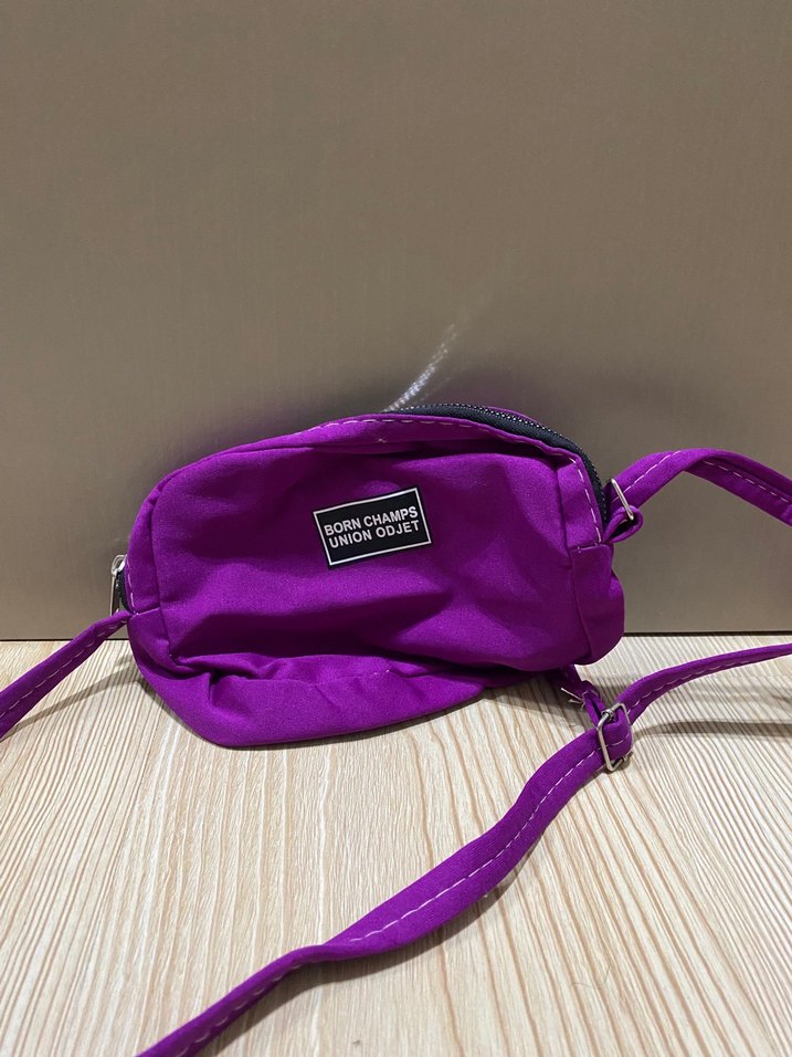 Mor renkte, fermuarlı bölmeli ve ayarlanabilir askılı kadın çapraz çanta. Sentetik kumaştan, renkli ve sokak modasına uygun. Günlük kullanıma uygun