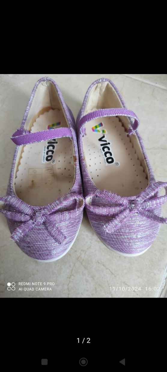 Mor Kadın Çocuk Babet Ayakkabı Velcro Bağlı