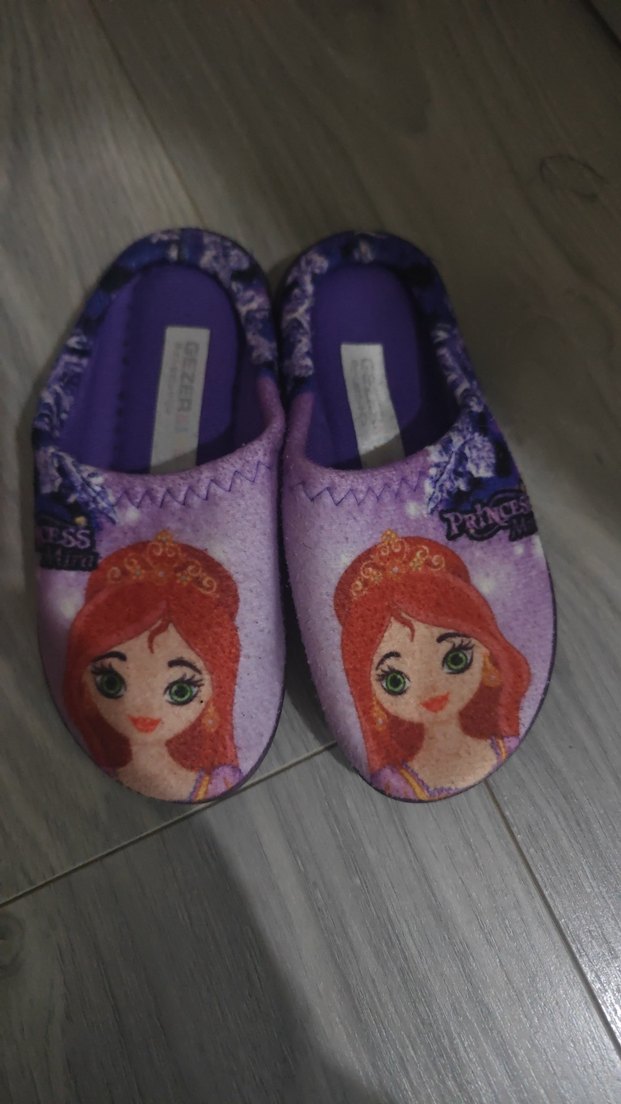 Mor renkli, baskılı ve cırt cırtlı kız çocuk terlikleri, yumuşak ve sıcak kumaşla konfor sağlar. sapasağlam kreşte giydi sayılı