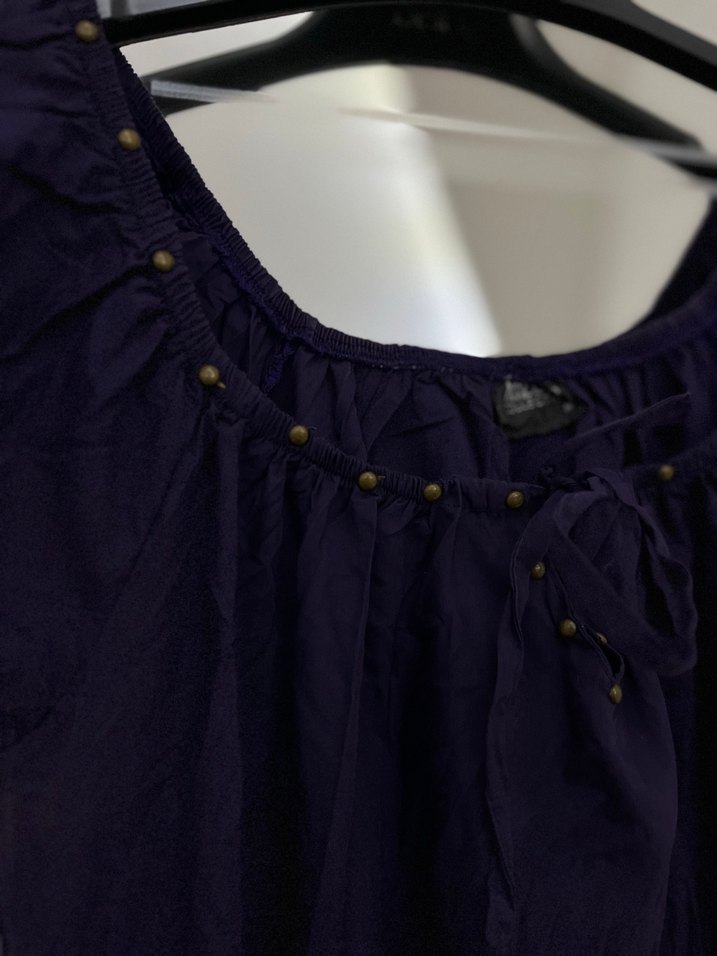 Düğmeli, tek renk mor kayık yaka ve salaş kesimlidir midi boyda, günlük kullanıma uygundur. özel dikimdir
