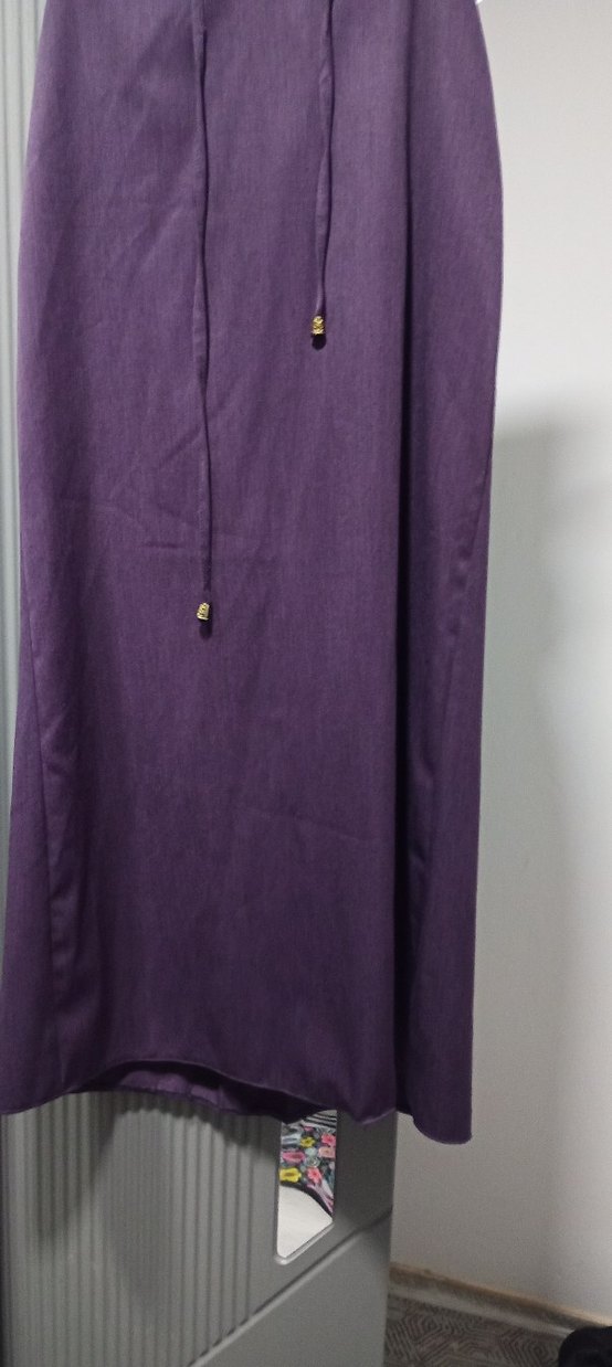 düz gömlek kumaşından mor renk etek uzun boy