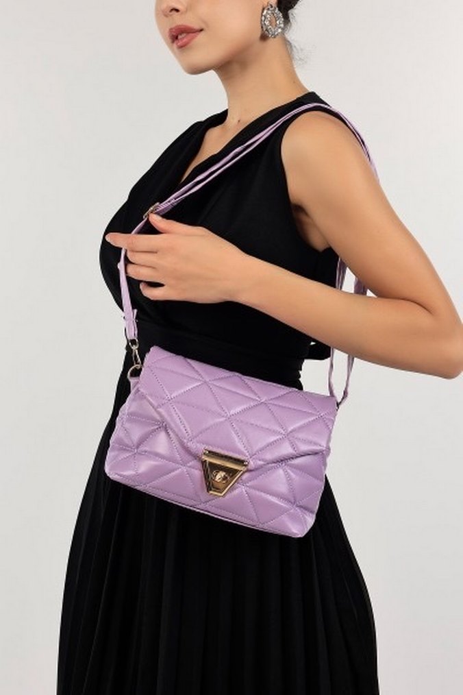 Yumuşak sentetik kumaştan, bel detaylı pastel mor kadın kapitone omuz çantası, günlük sokak stili için uygundur. 3 ADET FİYATIDIR