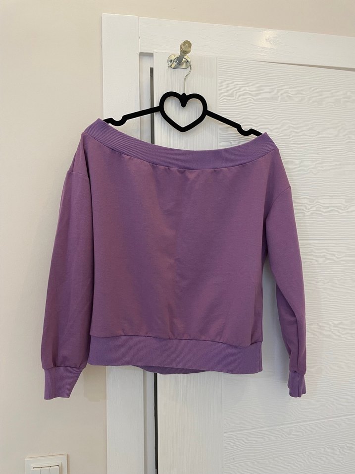 Mor Kadın kayık yaka  Sweatshirt Uzun Kollu - Görsel 1