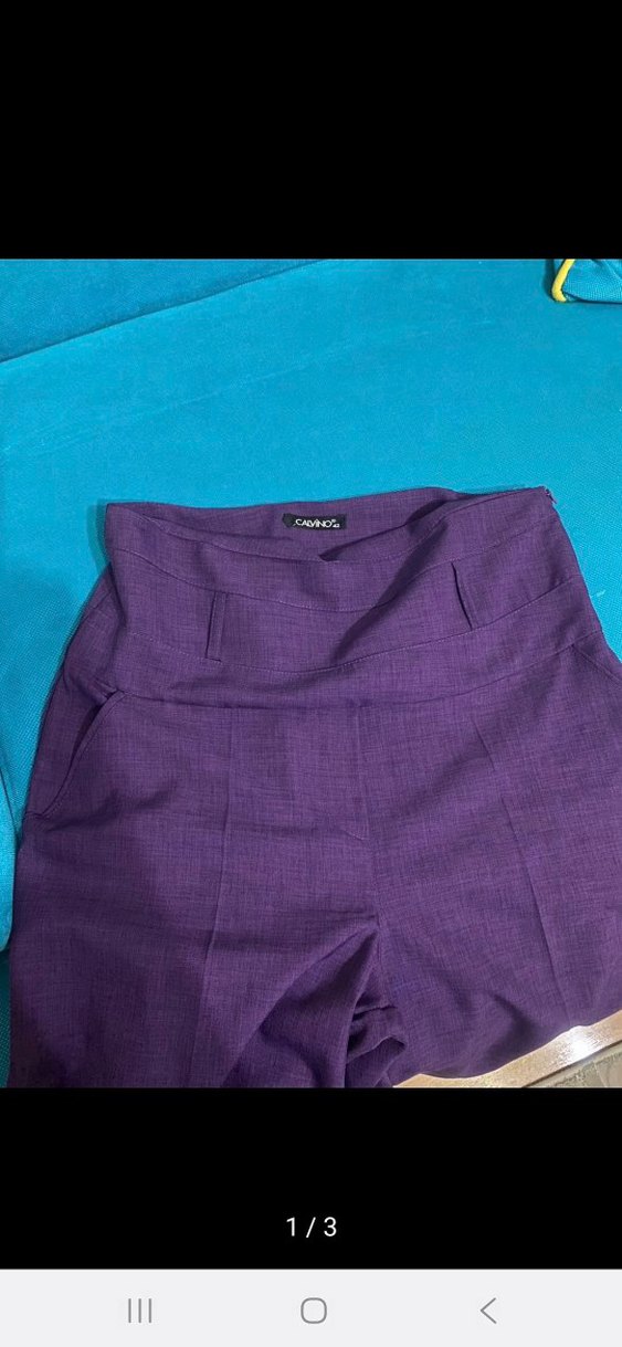 Koyu mor keten kumaştan, pilili, kumaş pantolon. Düz ve iş ortamına uygun klasik tarzda. Hiçbir sorunu yok bir iki kez anca giyildi.