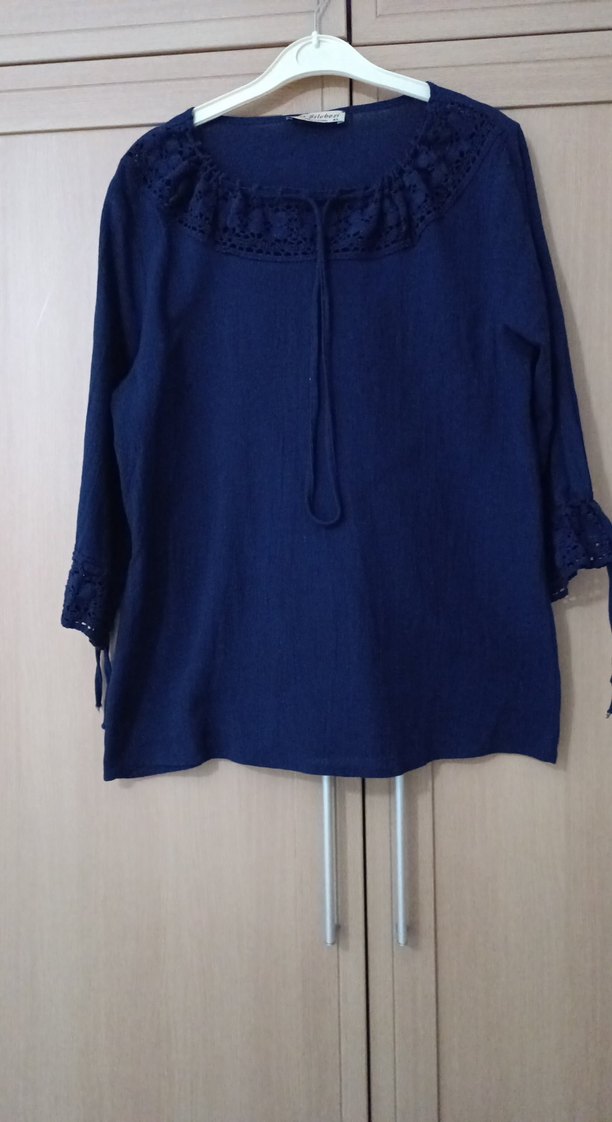Mor Kadın Keten Uzun Kollu Bluz