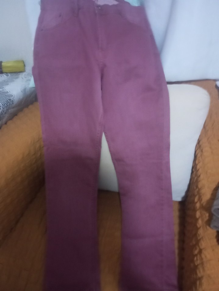 Mor kadın kot lastik kumaş pantolon. Günlük kullanıma uygun, pastel tonlarda, rahat ve şık bir görünüme sahiptir.