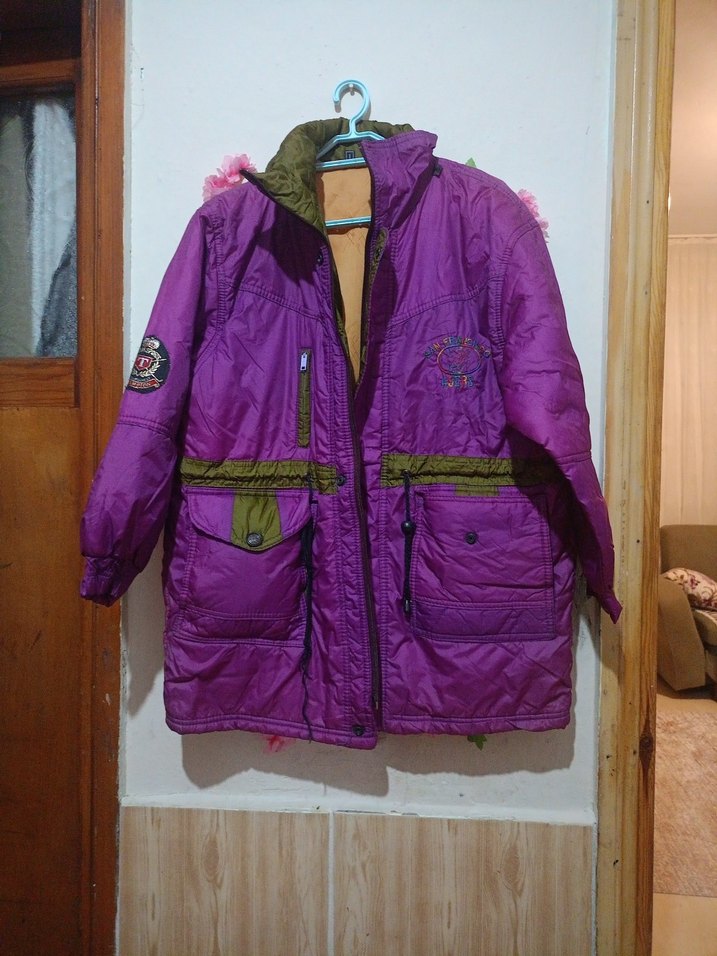1 beden yazıyor. oversize kalıp ve çocuklarda olur.Mor renkli, kürk detaylı, notched lapel yakalı kadın kış montu. Bol kesim ve uzun kollu, günlük kullanım için uygun, renkli ve rahat bir tarz sunar.