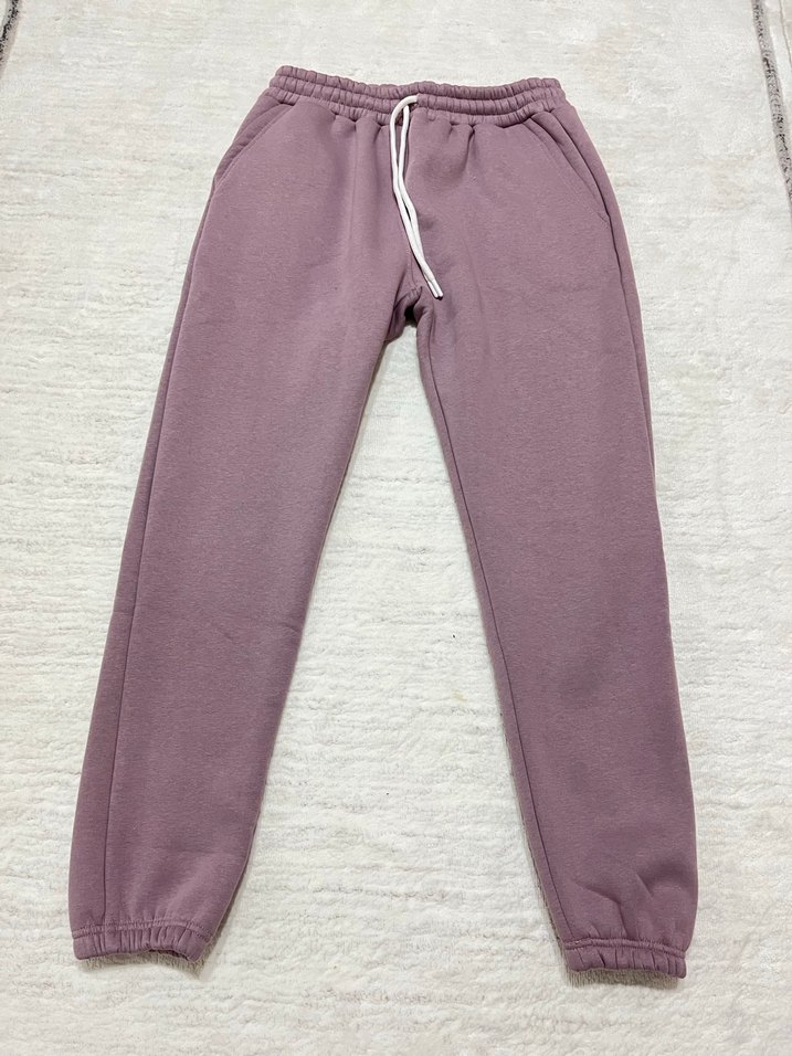 Yumuşak ve sıcak kumaştan, elastik bel ve paça detaylı mor rahat kesim kadın eşofman altı, günlük kullanım için uygundur.