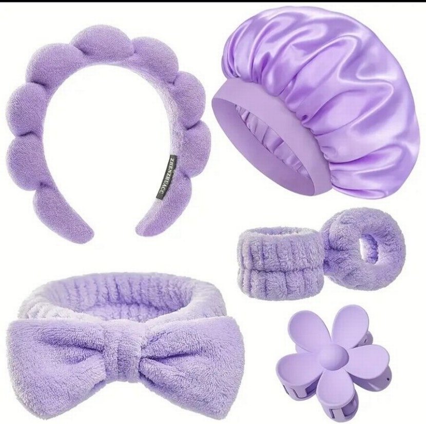 Yumuşak ve rahat kumaştan yapılmış, elastik detaylara sahip pastel mor saç aksesuarları seti. Bohem ve retro tarzlara uygundur.