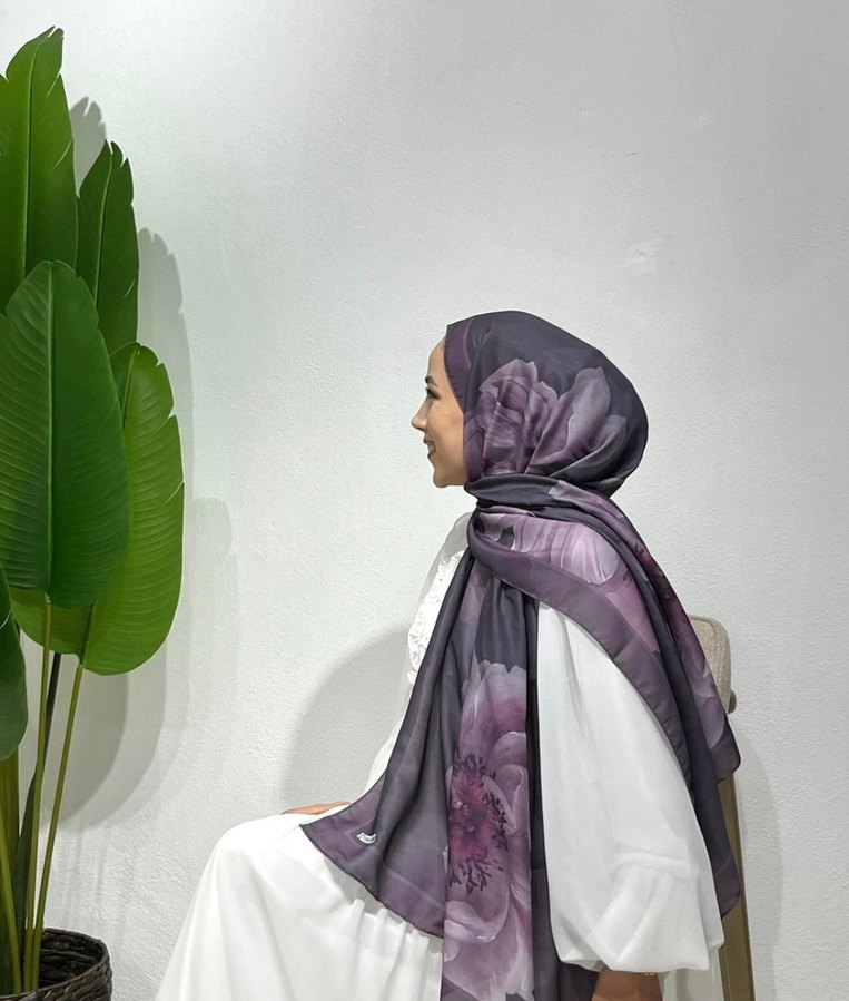 Mor renk su yolu incisi model , dökümlü tasarıma sahip, ipeksi dokulu kadın şalı. Kayma yapmaz kolay şekıl alır