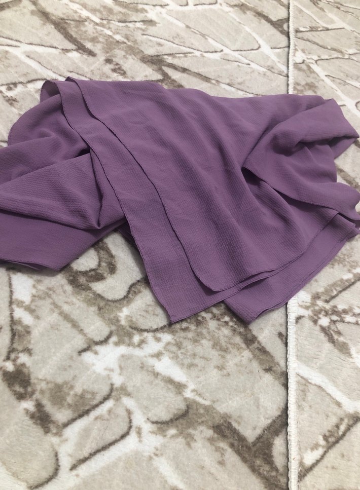 Yumuşak sentetik kumaştan mor kadın şal, drapeli tasarımıyla rahat ve çağdaş bir görünüm sunar. Sade ve temel stil için uygundur.