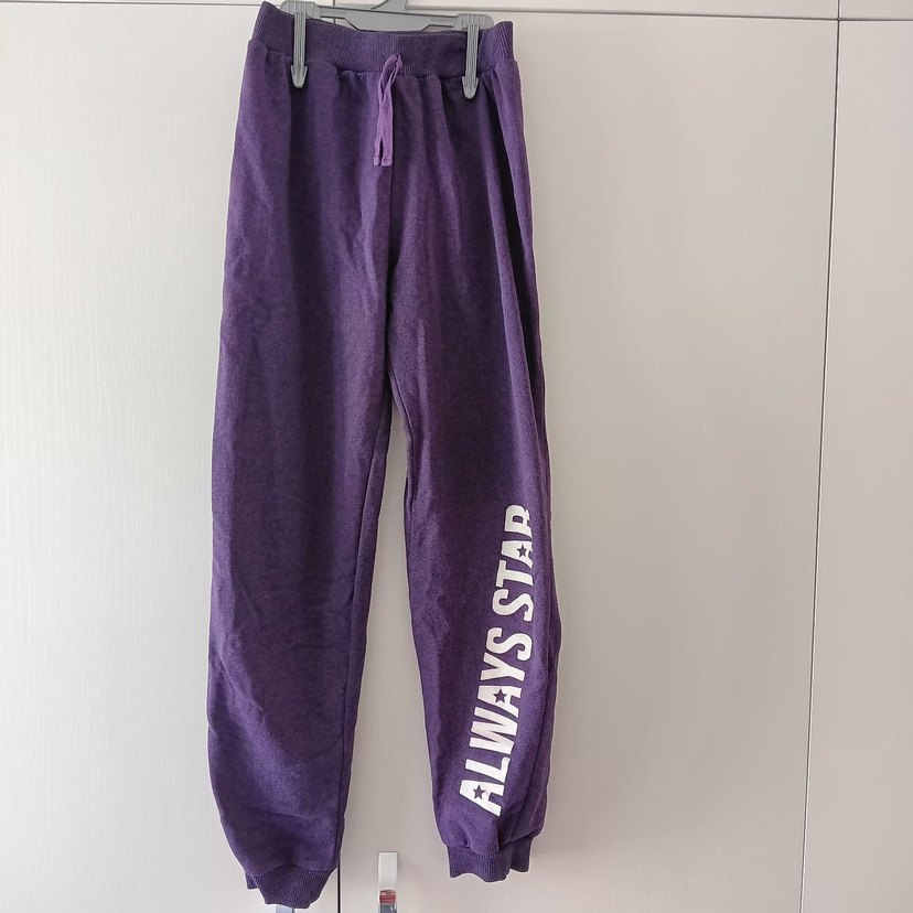 Mor renk, salaş kesim eşofman altı. Yumuşak ve sıcak kumaştan, baskılı 'ALWAYS STAR' yazısı ve yan yırtmaç detayı bulunur. Spor ve sokak stiline uygun. giyilmektedir biraz yüzeyi yıprandı.
