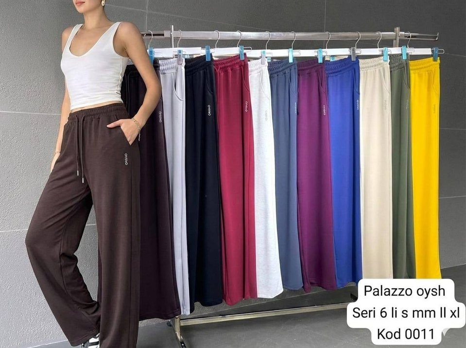 RPT OYSHO MODAL KUMAŞ PALAZZO MODEL PANTOLON SMMLLXL 6LI Mor renkte, sentetik kumaştan üretilmiş uzun ve salaş kesim kadın eşofman altı. Günlük kullanıma uygun, drapeli ve rahat bir sokak stili sunar.