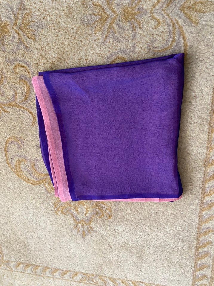 Mor pastel tonlarında, pembe kenarlı, yumuşak sentetik kumaştan,çift taraflı şifon eşarp