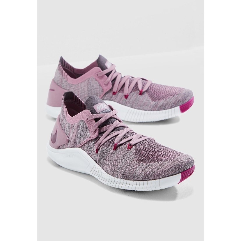 Mor baskılı desenli, elastik detaylı ve kauçuk tabanlı kadın spor ayakkabısı, spor ve şık günlük kullanım için uygundur.