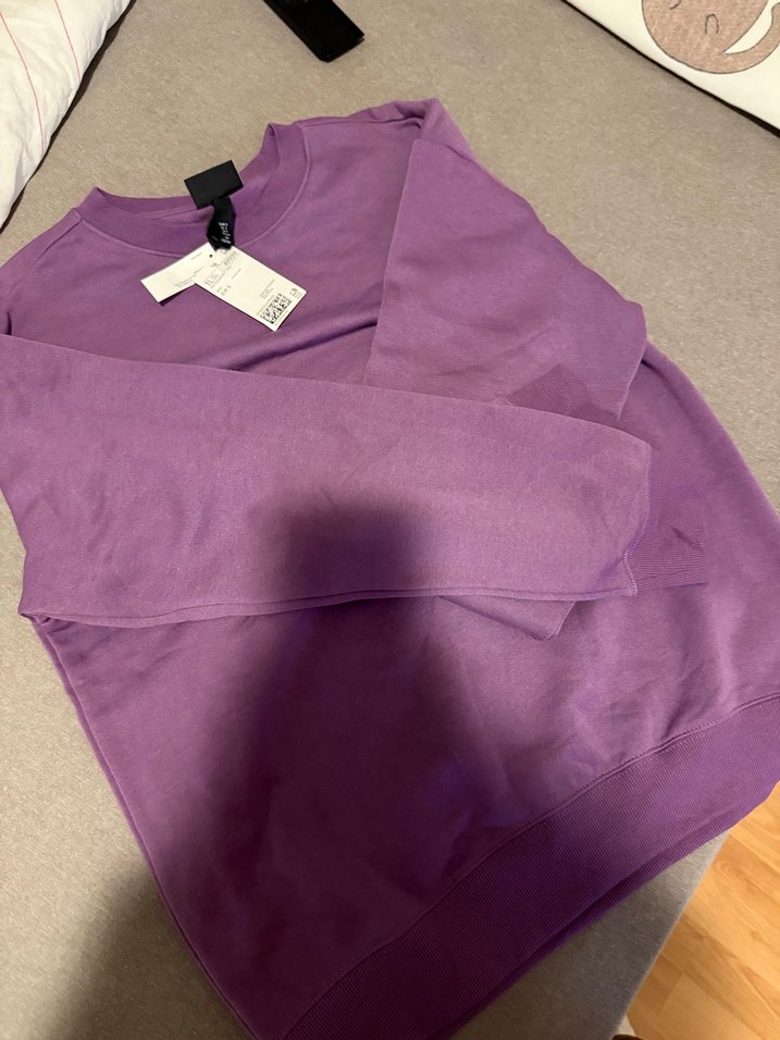 Kadın sweatshirt, yuvarlak yaka ve uzun kollu, rahat kesimdir. Yumuşak ve sıcak kumaştan üretilmiş olup, pastel mor renk ve düz desene sahiptir, günlük kullanıma uygundur.