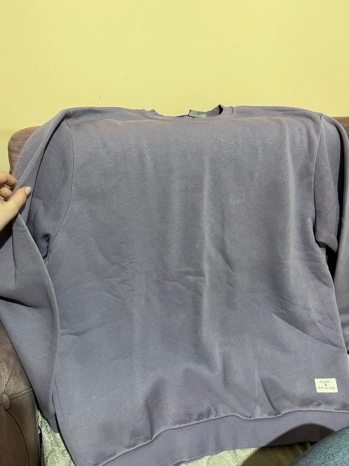 Mor renk, yuvarlak yakalı, uzun kollu ve rahat kesimli kadın sweatshirtü, yumuşak ve sıcak kumaştan üretilmiştir. Günlük kullanım için uygundur.