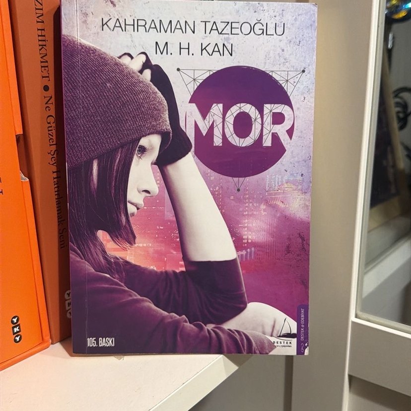 Kahraman Tazeoğlu ve M.H. Kan'ın 'Mor' adlı romanı, 105. baskı. Düşündüren bir hikaye ve dikkat çeken kapak tasarımı.
