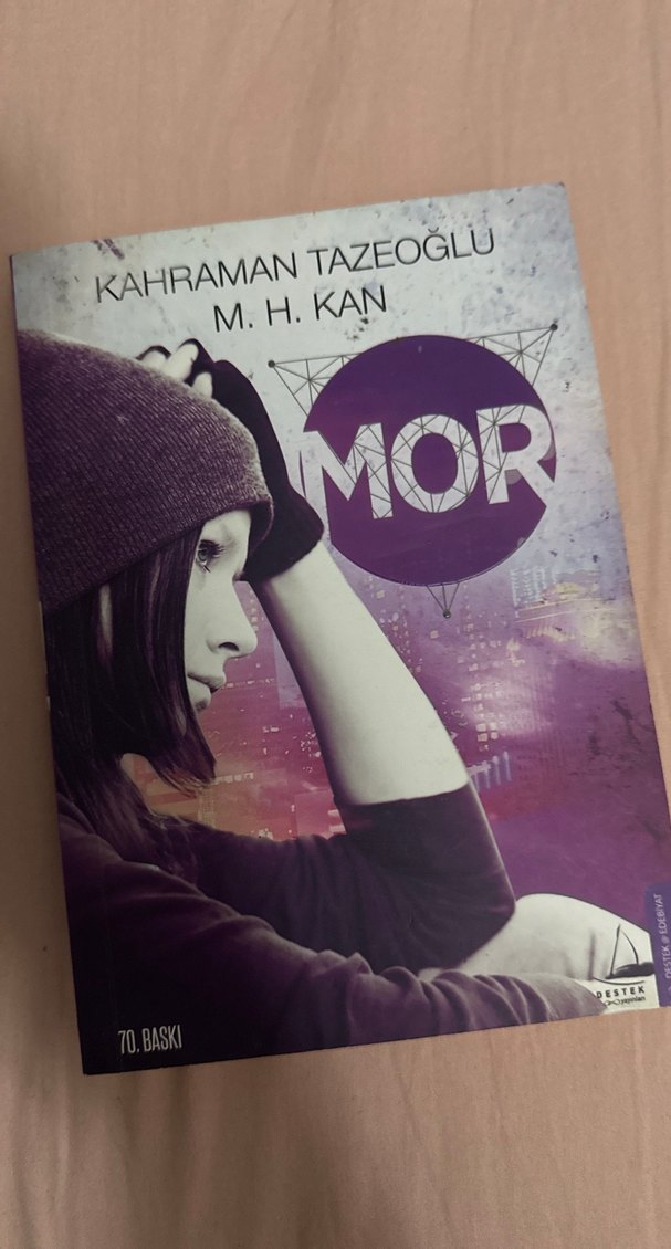 Kahraman Tazeoğlu ve M.H. Kan'ın "Mor" adlı romanı, 70. baskı. Derin duygusal temalar ve ilişkiler üzerine bir eser.