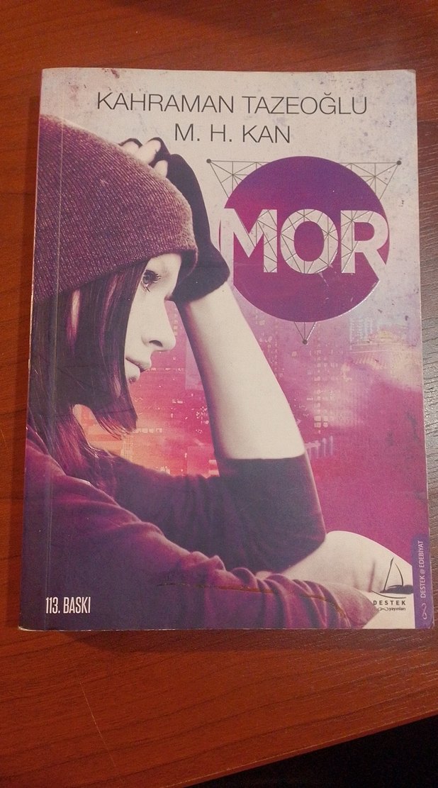 Kahraman Tazeoğlu ve M.H. Kan'ın 'Mor' adlı romanı, 13. baskı, kapakta mor kapüşonlu genç bir kadın yer alıyor.