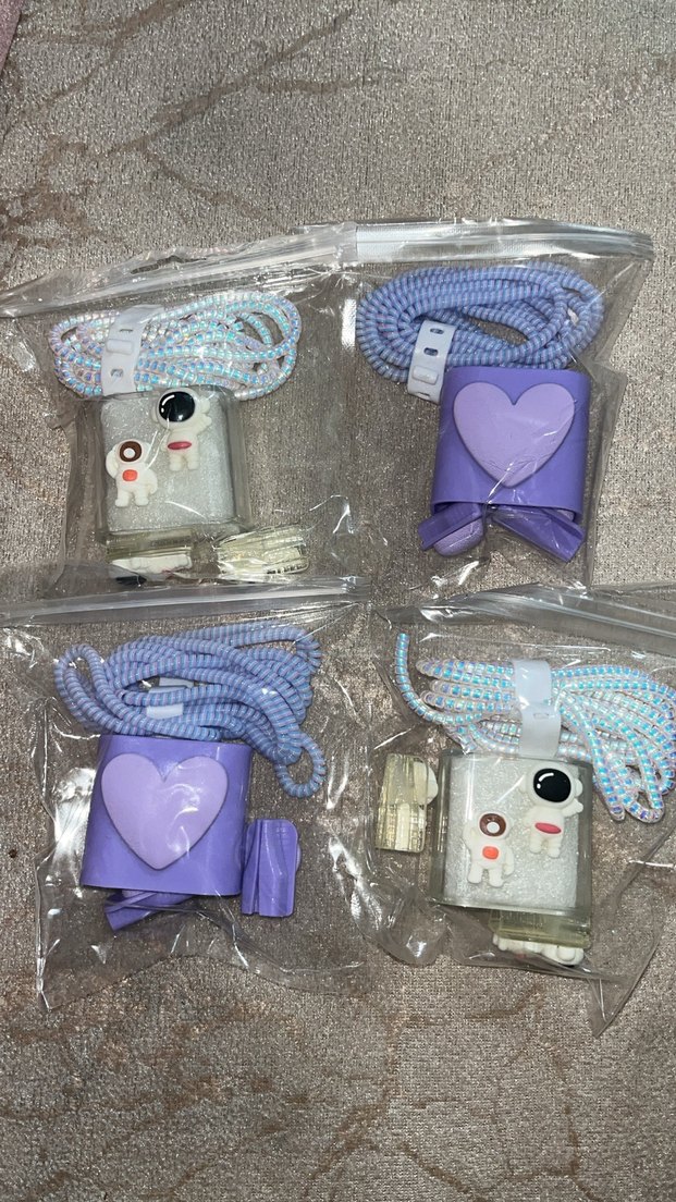 Mor pastel renkli, boncuklu kayış ve kalp detaylı, karşı kültür tarzında telefon aksesuarları.