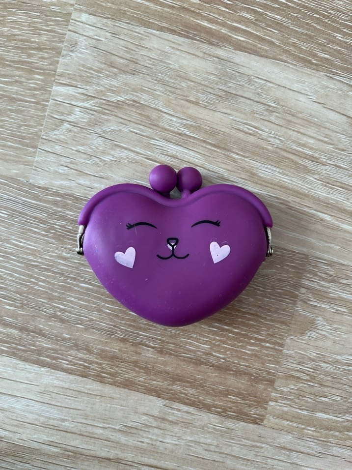 Mor kalp şeklinde, tokalı kadın cüzdan. Yumuşak ve rahat malzemeden, sevimli ve eğlenceli tasarıma sahip. Bozuk paralar için kullanıyordum tatlı bi görüntüsü var