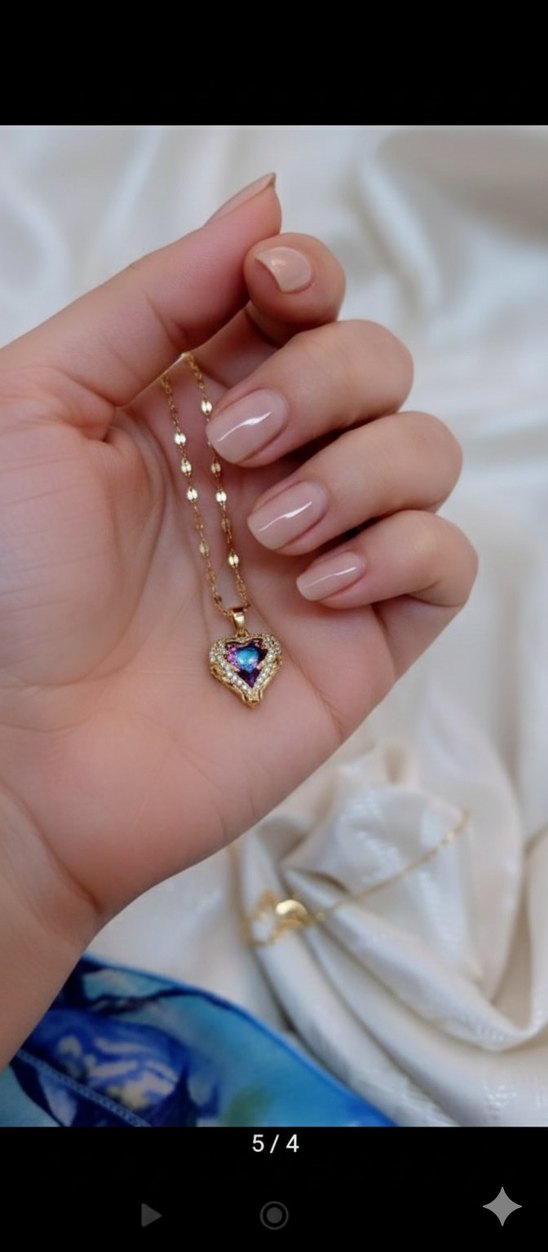 Bu çağdaş minimalist kolye, açık mor kalpli ve midi uzunluğa sahiptir. Romantik akşamlar için klasik şıklık sunar.