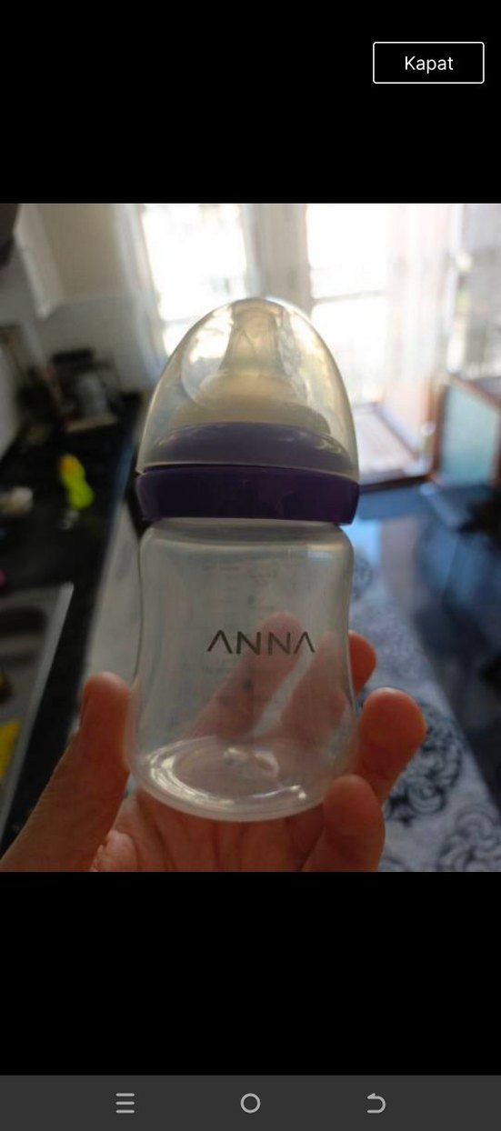 Mor kapaklı ve gri gövdeli, "ANNA" yazılı bebek biberonu. Şeffaf emzik ve koruyucu kapağa sahiptir.