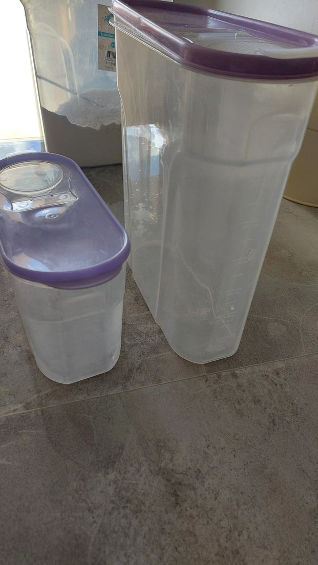 Mor kapaklı, şeffaf plastik saklama kapları seti. Mutfakta kullanıma uygun, dayanıklı ve içeriği kolayca görebilme imkanı sağlar. ️
