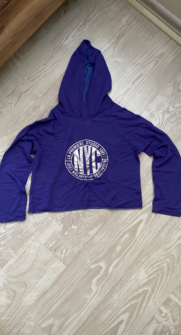 Mor Kapüşonlu Baskılı mevsimlik sweat