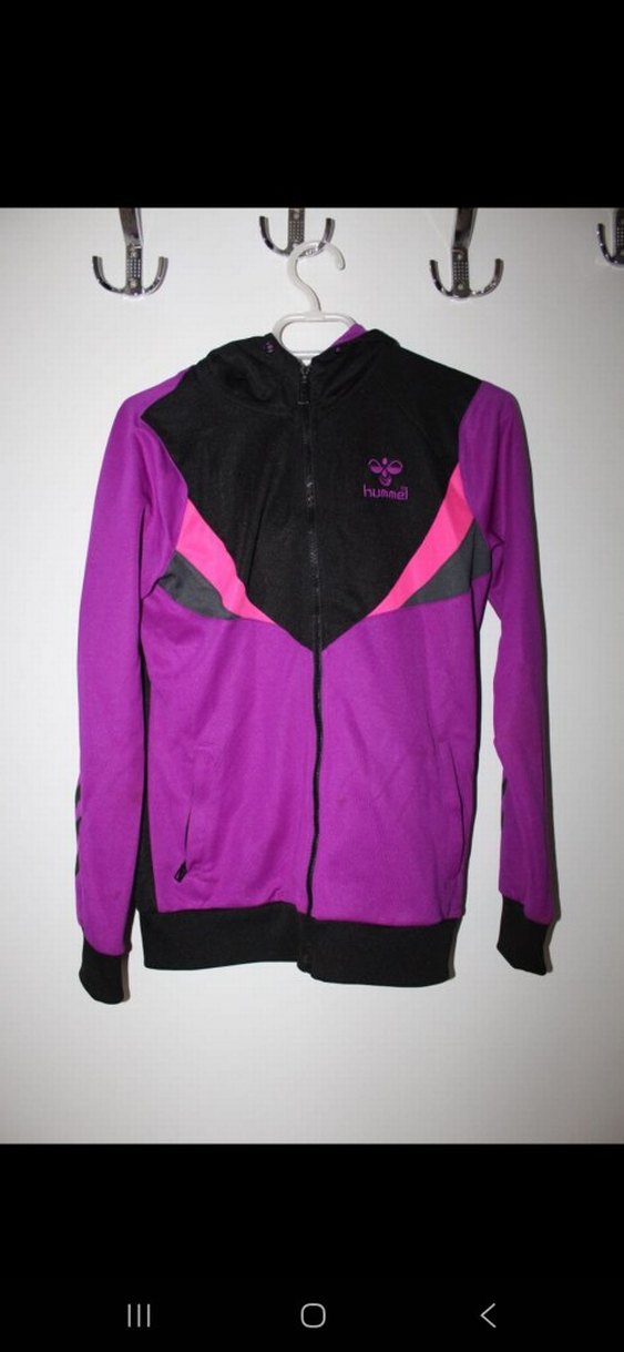 Fermuarlı, kapüşonlu ve uzun kollu, mor tonlarında baskılı kadın ceketi. Yumuşak ve sıcak kumaştan, spor ve günlük şıklık için uygundur.