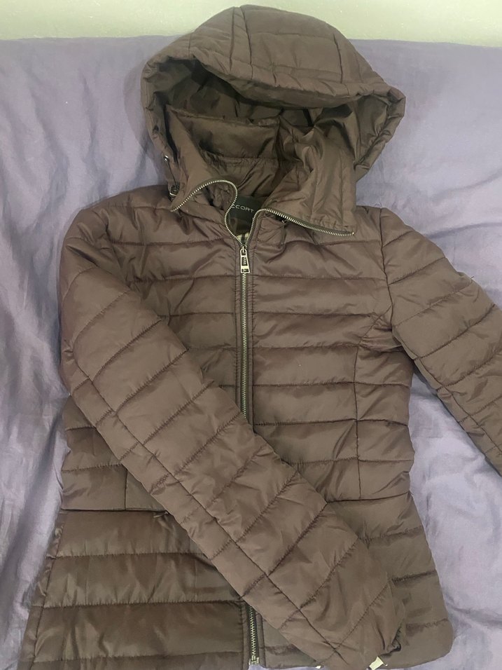Mor Kapüşonlu Fermuarlı Kışlık Kadın Mont