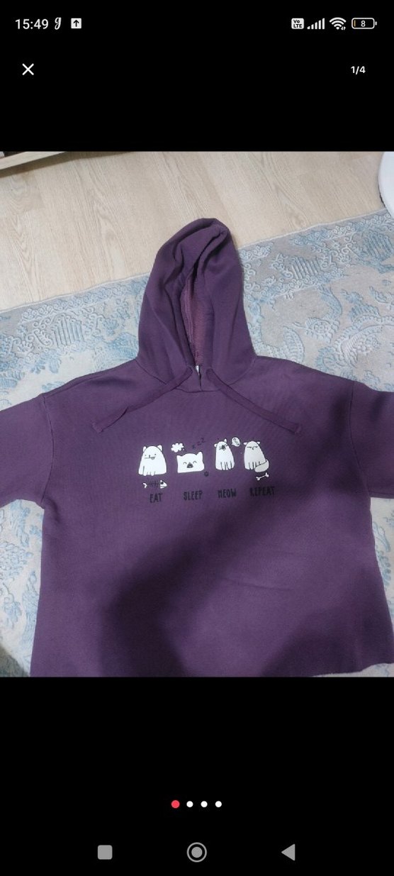 Mor renkli, kapüşonlu, uzun kollu ve bol kesim kadın sweatshirt. Üzerinde 'EAT SLEEP MEOW REPEAT' yazılı baskı bulunur, yumuşak ve rahat kumaştan üretilmiştir.