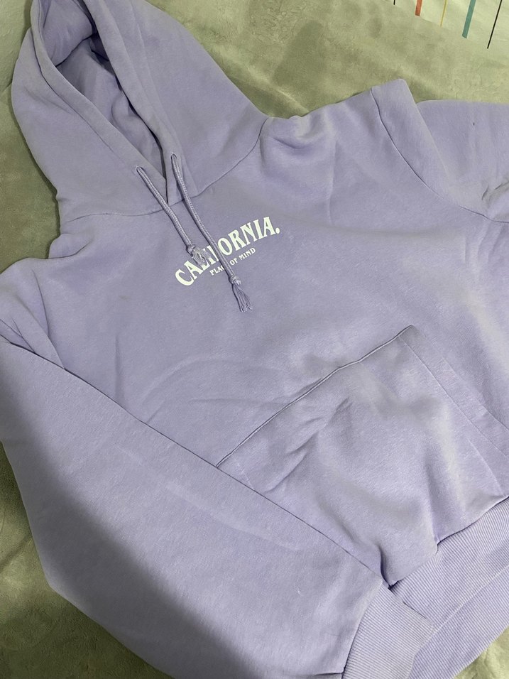 Mor, kapüşonlu, bol kesim sweatshirt. Hiç giyilmedi temiz.