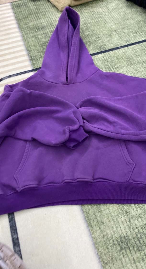 Mor Kapüşonlu Kadın Sweatshirt - Görsel 2