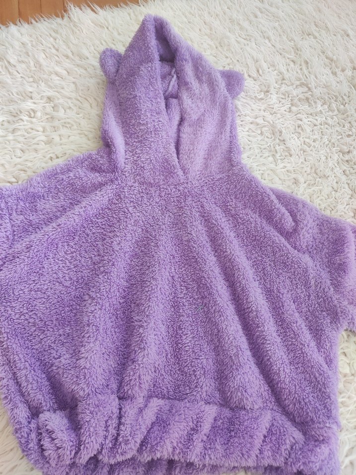 Yumuşak ve sıcak kumaştan, uzun kollu, kapüşonlu ve kürk detaylı, bol kesim mor kız çocuk pançosu. Desensiz, bohem tarzda. çocuğun yapısına göre değişir boylu benim çocuklar 10 yasa uygundu